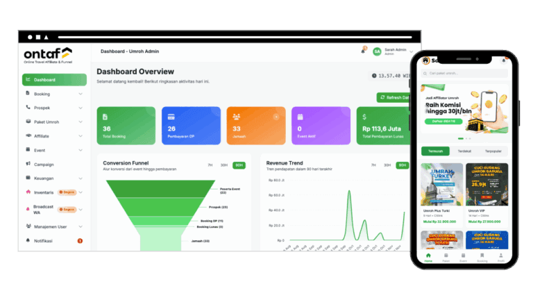 Ontaf adalah Tools Marketing Travel Umroh yang membantu pemilik travel mengaktifkan agen, meningkatkan penjualan, dan membuat funnel prospek lebih teratur.